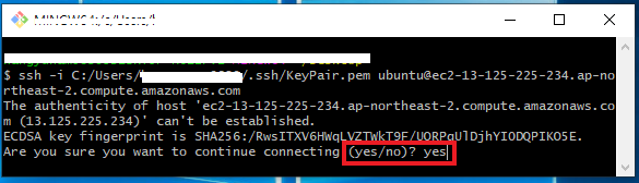 뭐 어쩌구저쩌구 yes/no 가 나올텐데 그냥 yes를 입력해주면된다.
