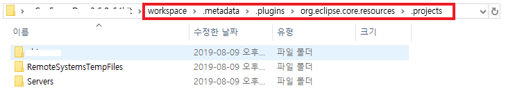 (삭제해도 프로젝트가 날아가는 게 아니고 다시 이클립스 실행해주면 자동으로 생성된다.)